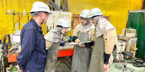私は溶接をしたくて入社しているので、そこにスポットを当ててしまいますが、技術の面で尊敬できる先輩がたくさんいます。深く広い知識を元に、高い技量を持っている。それを惜しげも無く私たちに教えてくれるところも尊敬できます。技術を高めるためには恵まれた環境で、自分自身が成長していける会社であること。そこが何よりも好きなところです。