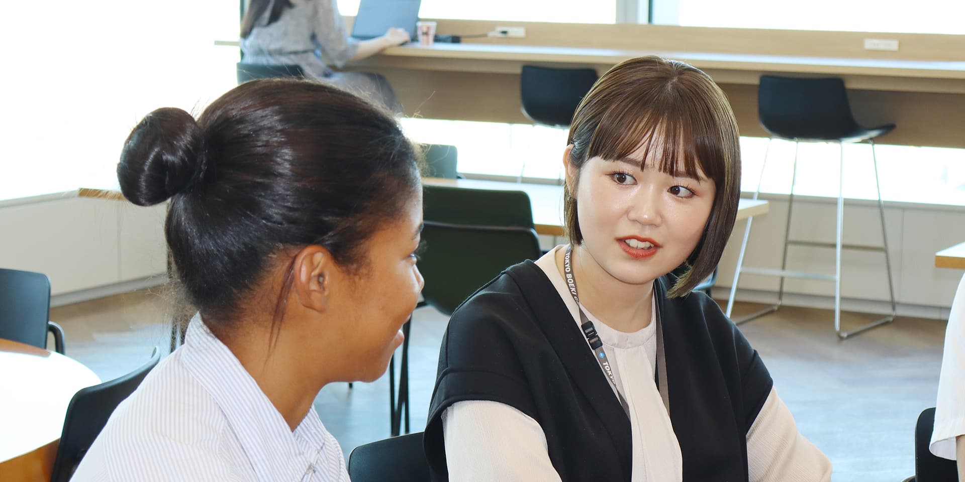 海外出身者やこの2人のように海外の大学に行っていたという人も多いです。同期の年齢も幅広く、色々な人生を送ってきた人がいて、話をするととても面白い人ばかりです。
