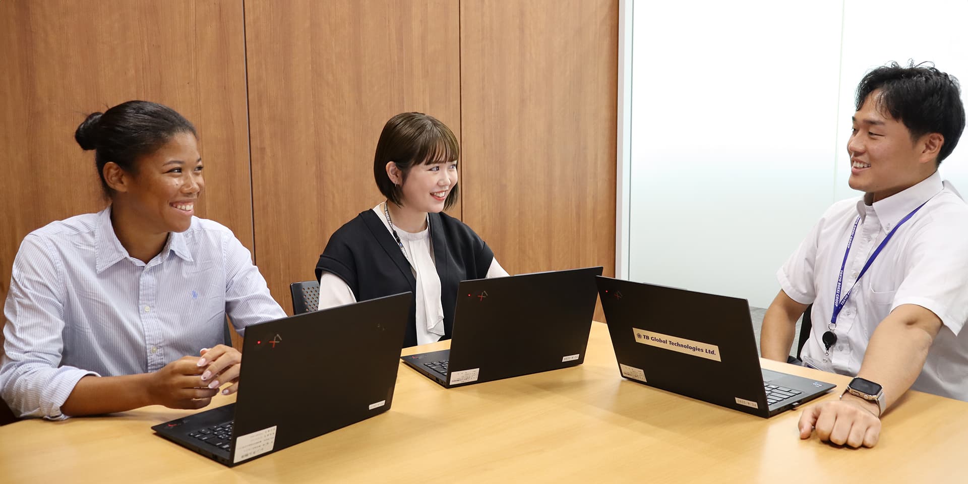 そこで今回は、2024年入社の新入社員から、TBE ジョーンズさん、TML石原さん、TBG大木さんの3人に集まってもらい、同期座談会を開催!